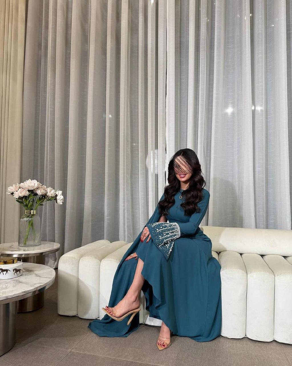 يتميز بلون تركوازي/أزرق مخضر غامق، والخامة تبدو ناعمة ومرنة، مما يضمن الراحة والأناقة.