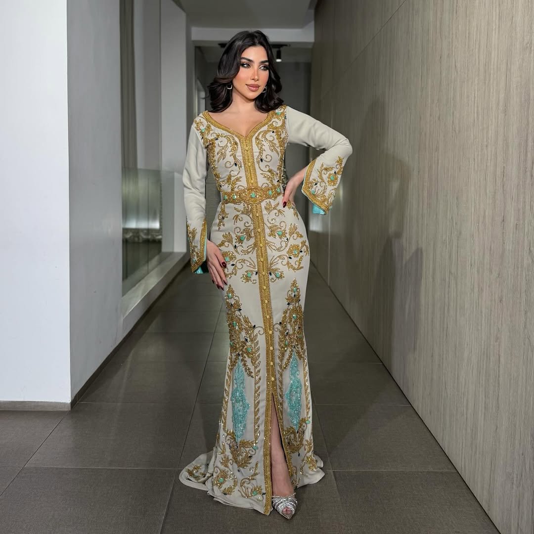 الخامه قفطان باربي +تطريز يدوي راقي