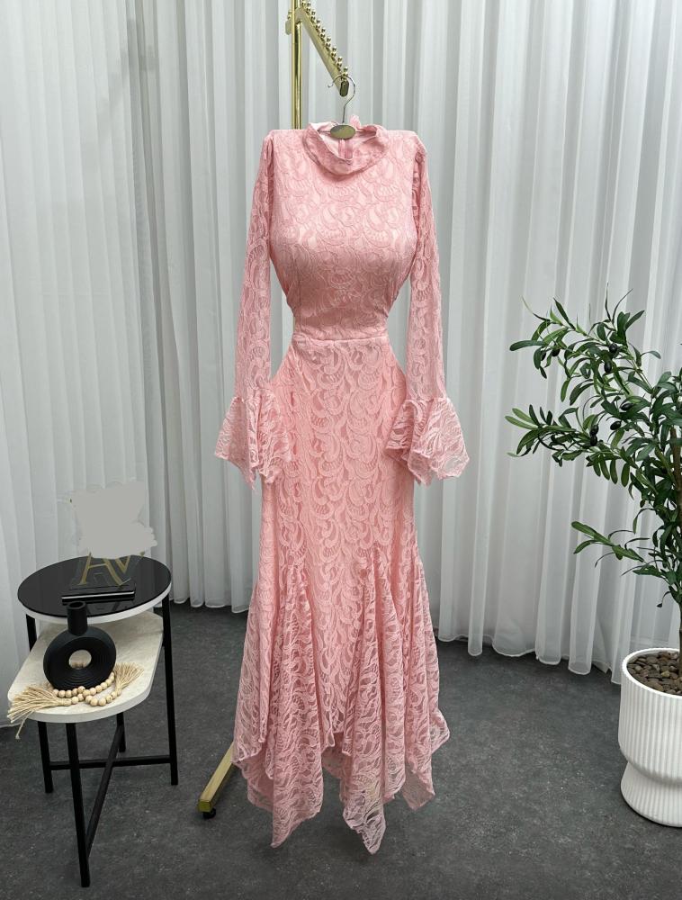 فستان سهرة أو مناسبات أنيق باللون الوردي الفاتح أو البيج