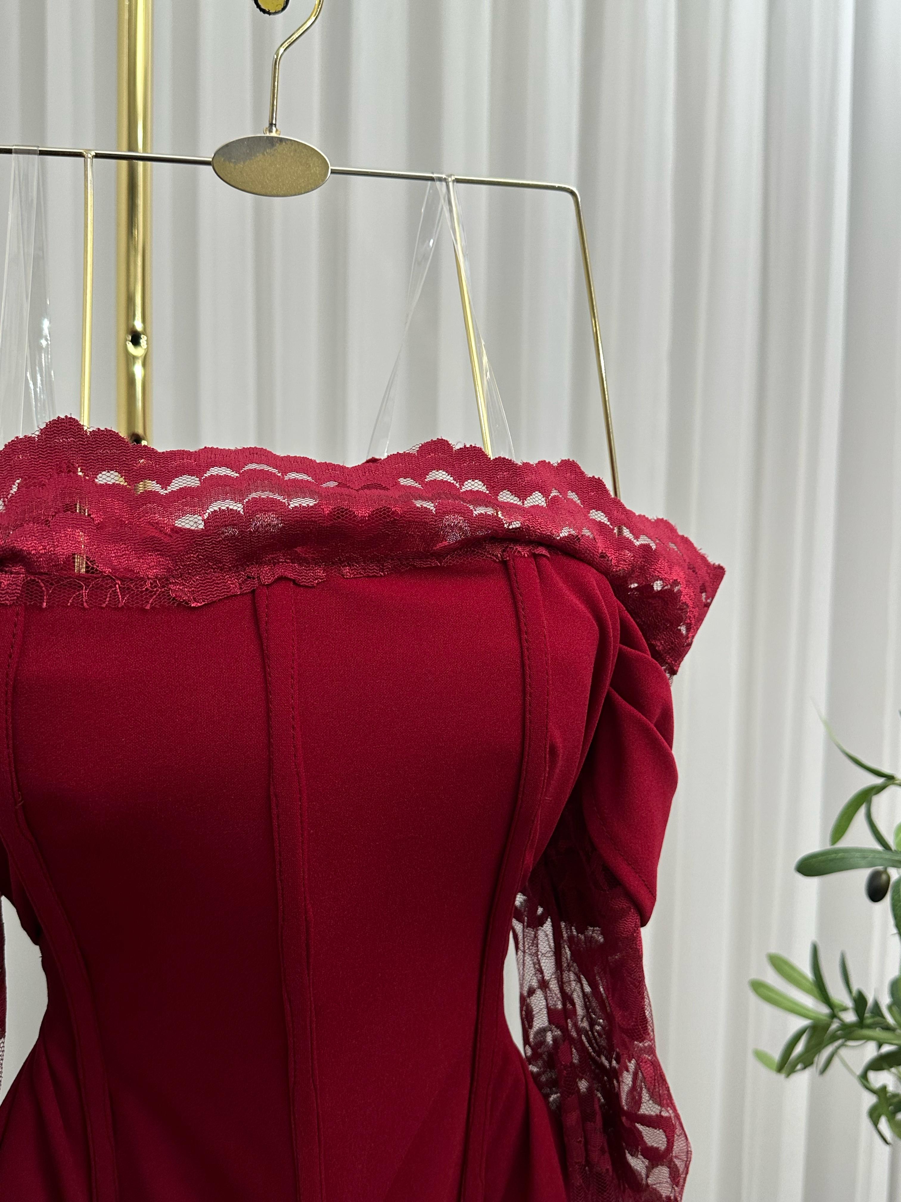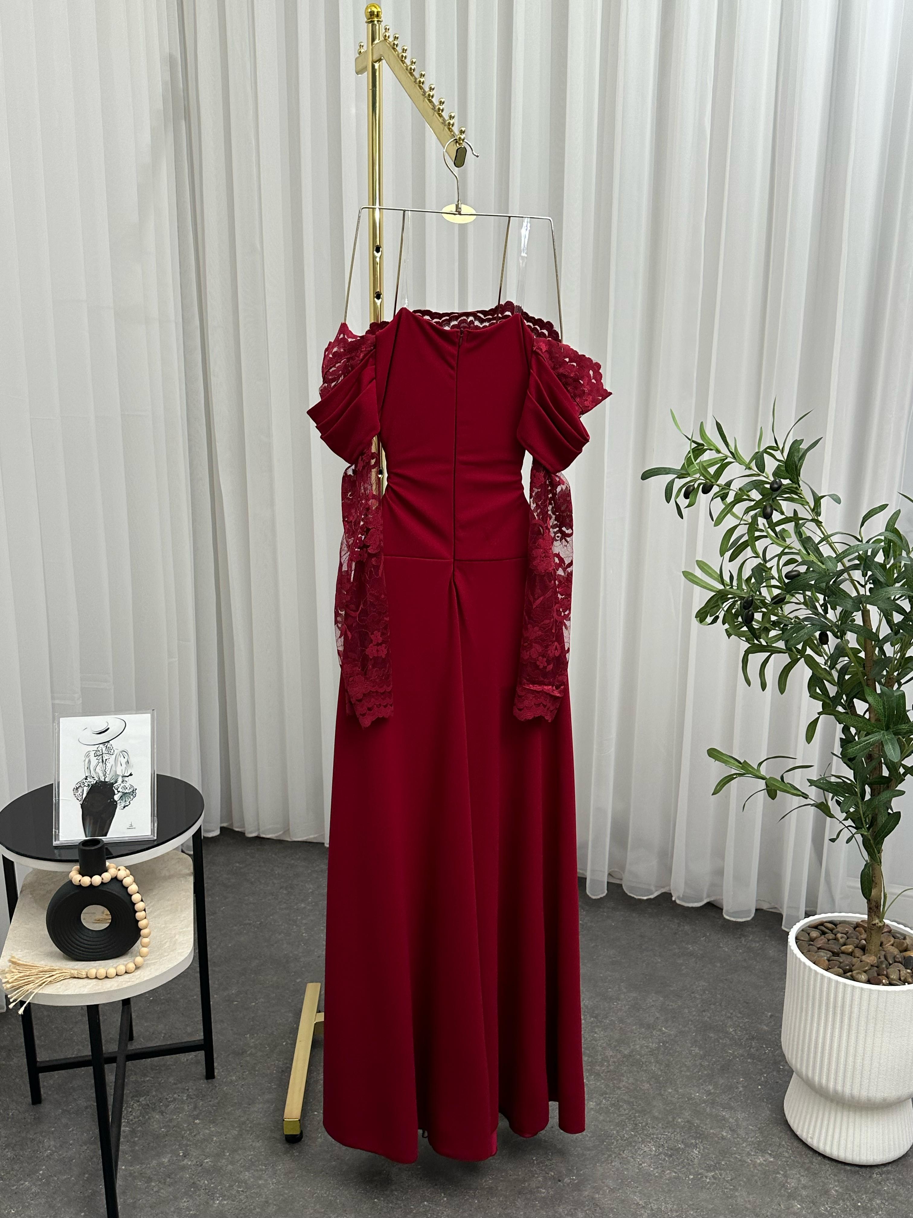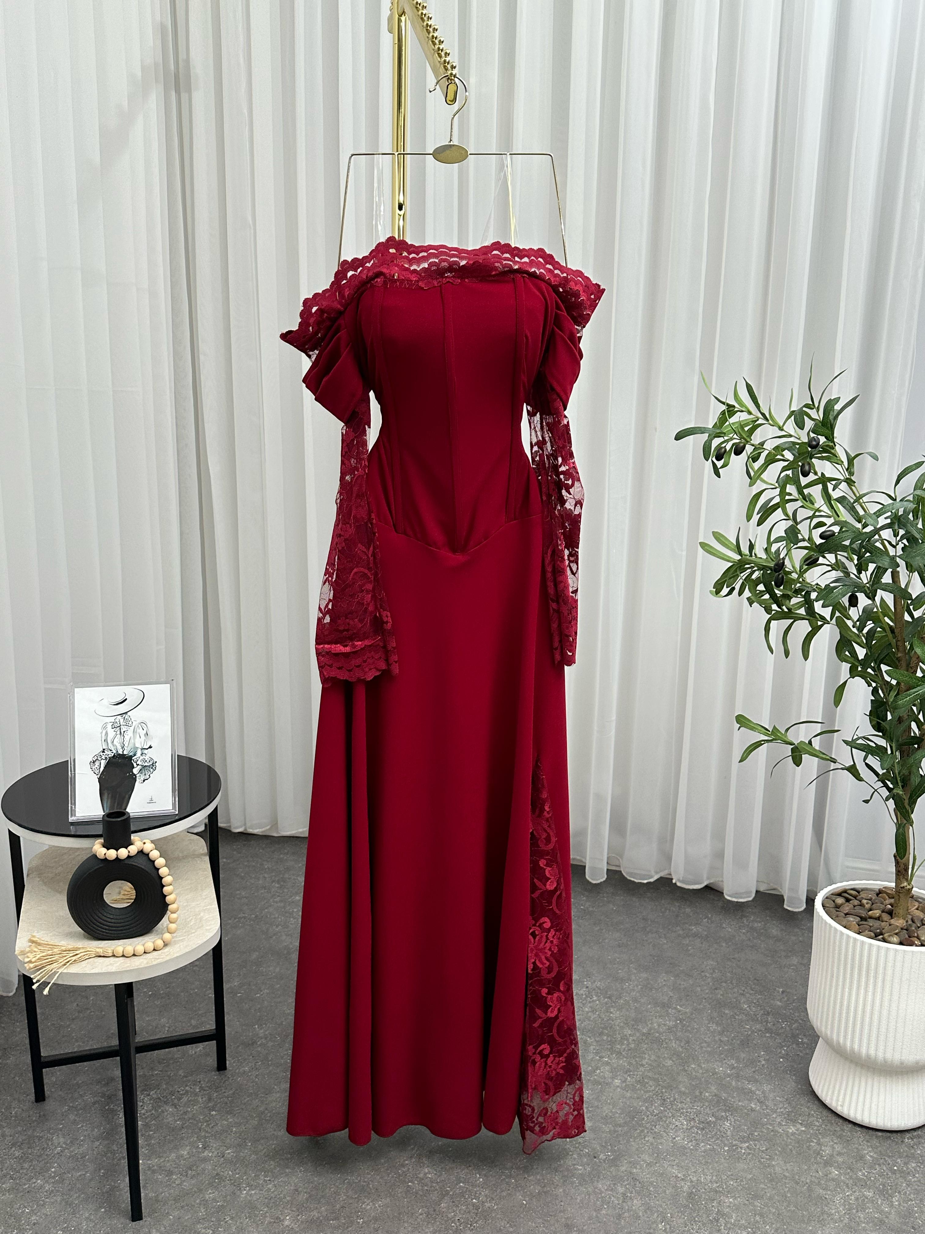 فستان سهرة فاخر باللون الخمري (البرغندي).