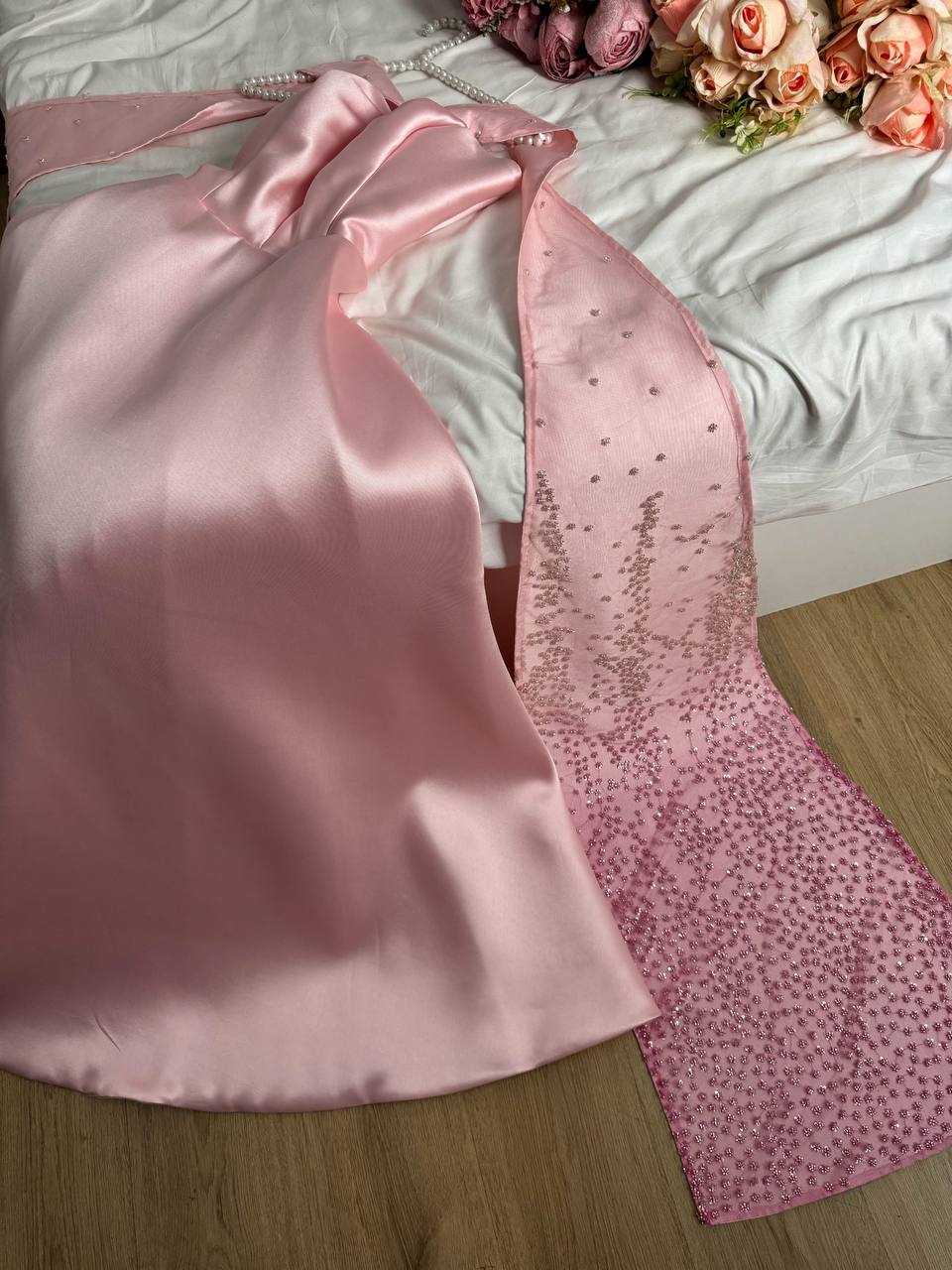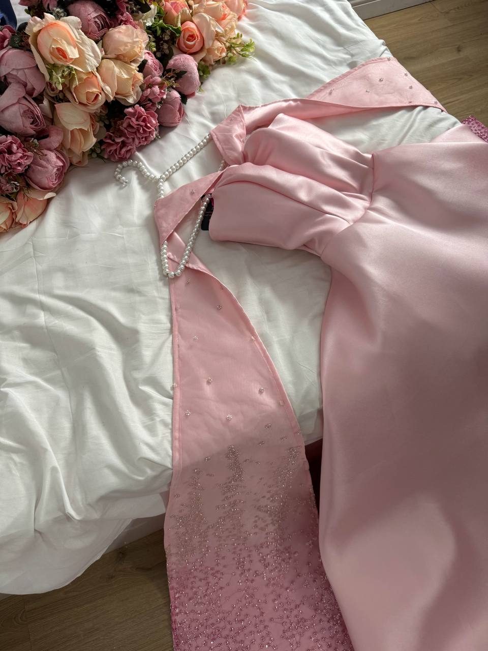 فستان سهرة طويل بلون وردي فاتح